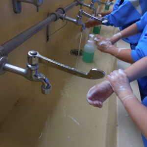 - 食品衛生指導員が手洗いの大切さと正しい洗い方について説明(15分間)